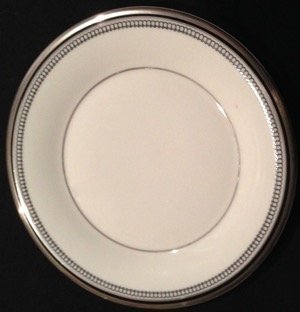 The flat rims are trimmed in platinum. Marked Royal Doulton Sarabande on the underside.